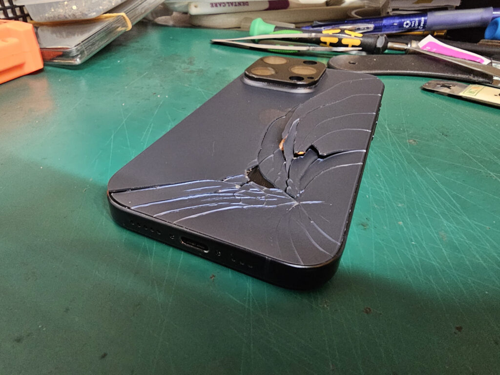 背面ガラスはデザインや質感向上だけでははなく、MagSafeや置くだけ充電のためにガラスが採用されています。このガラスは衝撃で壊れてしまうことがあり、Apple純正部品でも背面ガラスの修理は背面Midシステムの交換で非常に修理費用の高いメニューの一つでもありました。