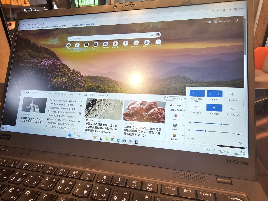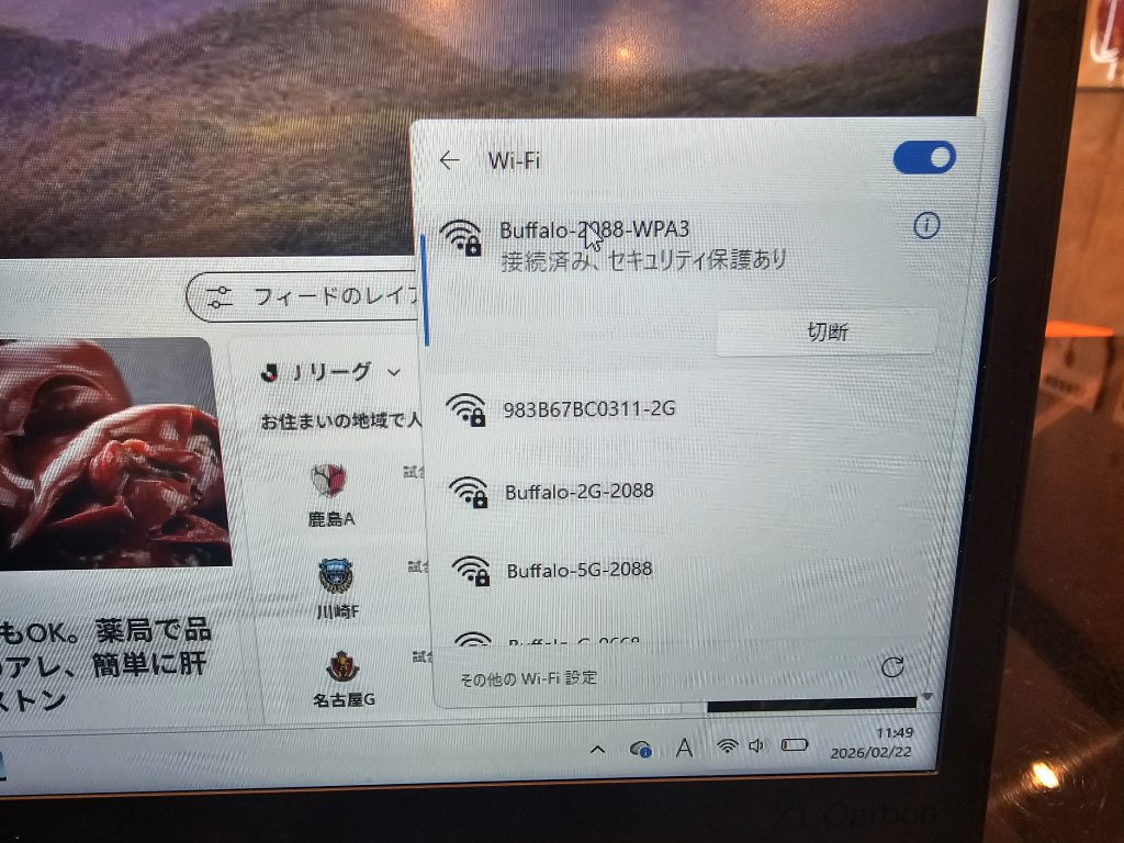 持ち込まれたシンクパッドをいつも通り起動していただき、iPhoneからのテザリングを実施していただきました。Wi-Fi接続には接続可能なリストが出ていますが、接続のために記憶しているパスワードを用いて接続を試みますが接続不可の回答。次に当店にあるWi-Fi接続を行いますが結果は同じ。2Gと5G回線ともに同じ結果で接続できませんでした。